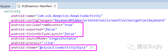 其次,从 AndroidManifest 中通过如下属性,排除 Activity 在 RecentTask 中的显示: