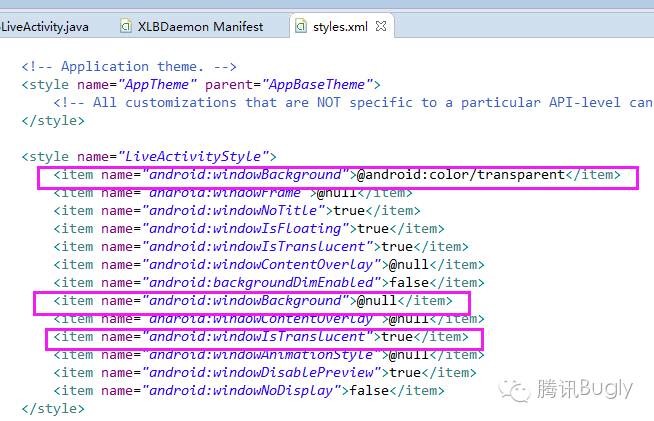 首先定义 Activity,并设置 Activity 的大小为1像素: