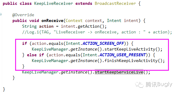 监控手机锁屏解锁事件,在屏幕锁屏时启动1个像素的 Activity,在用户解锁时将 Activity 销毁掉。注意该 Activity 需设计成用户无感知。