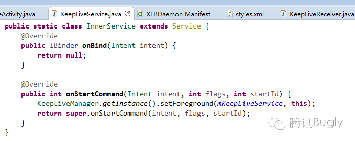 Android 中 Service 的优先级为4,通过 setForeground 接口可以将后台 Service 设置为前台 Service,使进程的优先级由4提升为2,从而使进程的优先级仅仅低于用户当前正在交互的进程,与可见进程优先级一致,使进程被杀死的概率大大降低。