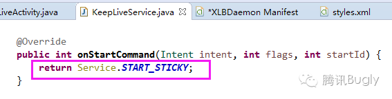 将 Service 设置为 START_STICKY,利用系统机制在 Service 挂掉后自动拉活: